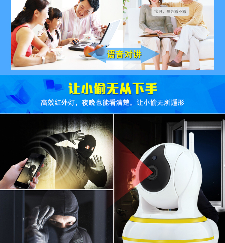 无线摄像头wifi 家用摄像机wifi智能 ip camera手机远程高清监控