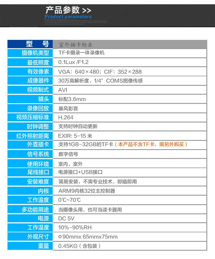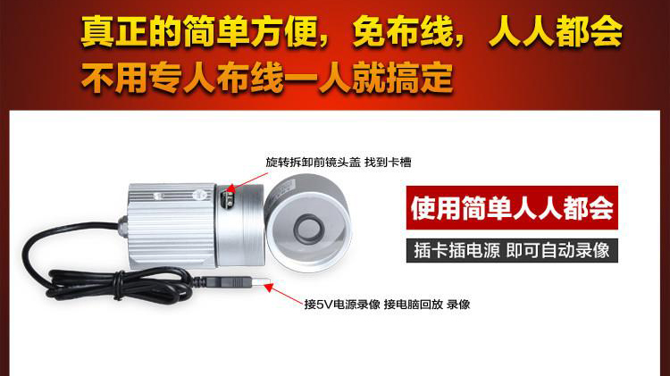 枪击防雨插卡摄像头USB智能监控摄像录像一体机 通电即录 免布线