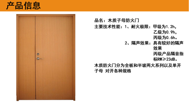 中沃厂家直销甲级单开对开子母木质防火门颜色自选可定制