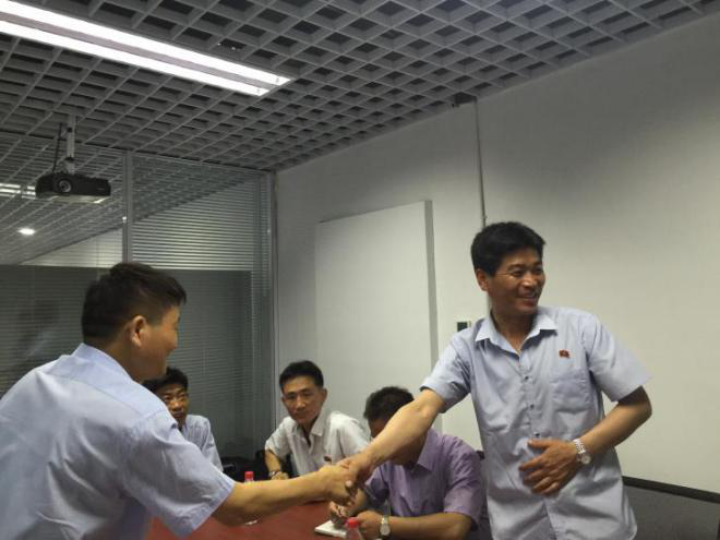 5月26日上午9点,昆仑中大领导与朝鲜机械工业部社长申哲明团长一行人举行会谈。
