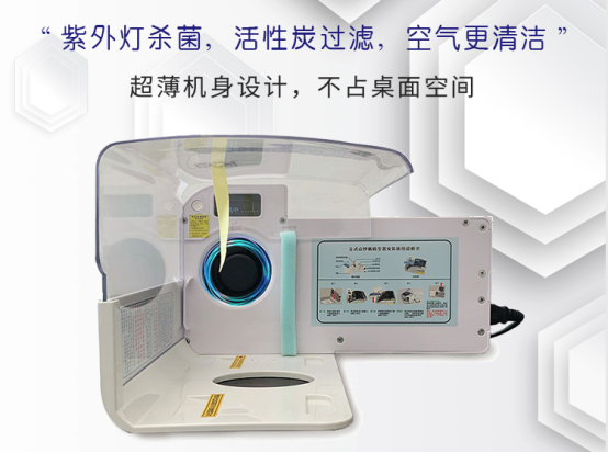 点钞机消毒器,是一款外置于点钞机机身的防尘净化消毒装置,它采用离心式风机、活性炭过滤袋,能在点钞机运行的过程中,高效吸附钞票中的粉尘,并内置紫外灯对粉尘内的细菌进行杀菌处理,减少了交叉传染,使货币不易霉变。该设备吸力强劲,噪音低,对细菌、病毒的杀灭比较彻底,具备设计科学、结构简单、使用方便、杀菌速度快等优点,隔断病菌在空气中传播,保障从业工作者的健康,维护从业人员的工作环境,使空气更清洁。