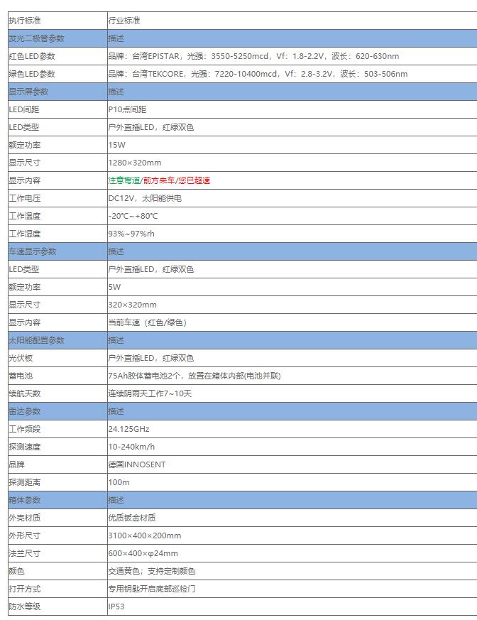 2.5m弯道预警哨兵适用于山区急转弯道路,无信号灯干道路口,高速、快速路入口,临街出入口。LED屏显示提示文字红色“前方来车”、绿色“注意弯道”,并语音警示。测速屏显示当前车速,正常行驶颜色为绿色,超速行驶颜色为红色。
