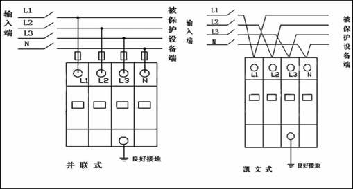 应用场合:通用于TT、 TN-S/TN-S-C供电系统,特别适合于电网品质差的电源防护,适合于户外进 线的电源防护。