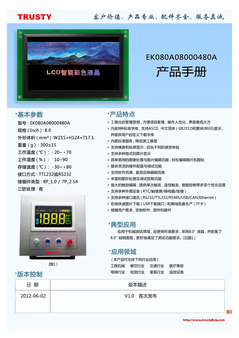 8.0寸TFT智能彩屏模块带触摸 8寸彩色液晶显示模块