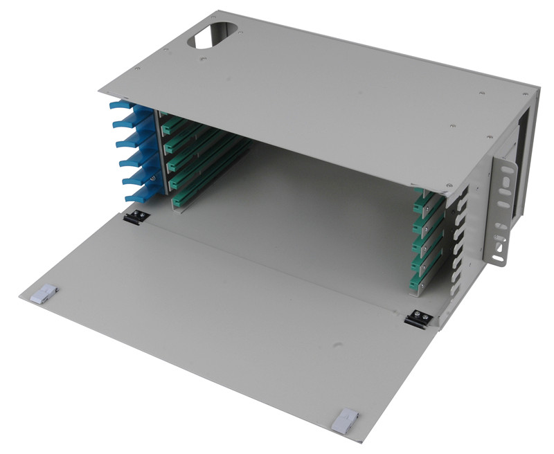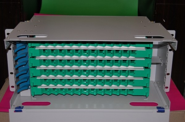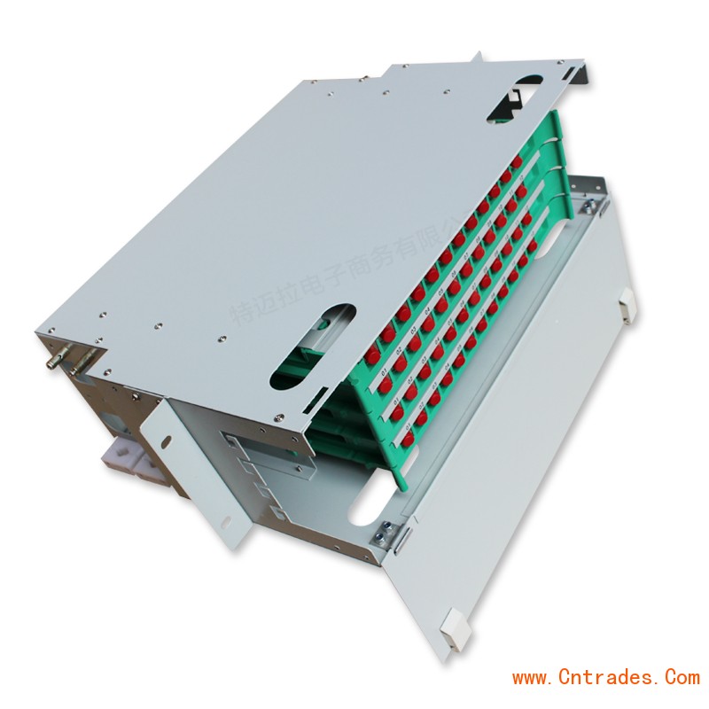 供应光纤熔接配线单元盒,所有的塑料部件采用的材料具有防腐性能,金属部件采用静电喷塑处理,以增加其防腐蚀性能;材料的物理、化学性能稳定并且材料之间有良好的相容性,全部材料无毒、无腐蚀,对人体健康和其它设备无副作用。标准安装界面,适用于多种机架、机柜上的安装 采用金属结构,表面涂装静电喷塑,结构轻巧,外形美观全模块化设计,全正面化操作,安装灵活、施工维护方便。抽拉式设计,集熔接配线一体化的熔接配线模块 ,适用于束状和带状光缆,每盘可卡式安装FC,SC,及ST适配器,适配器正面呈30°角,既保证拉光纤的曲率半径,又可避免激光损伤眼睛。模块可取出至设备外操作,简单方便,光缆和尾纤均具有2m以上的盘储空间,固定和保护稳定性高。