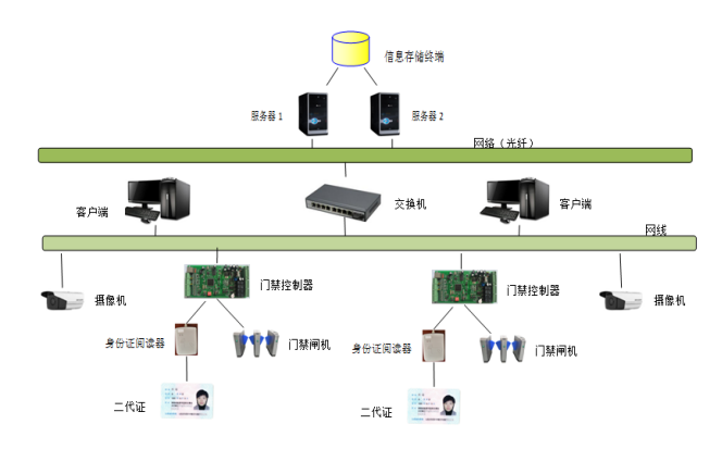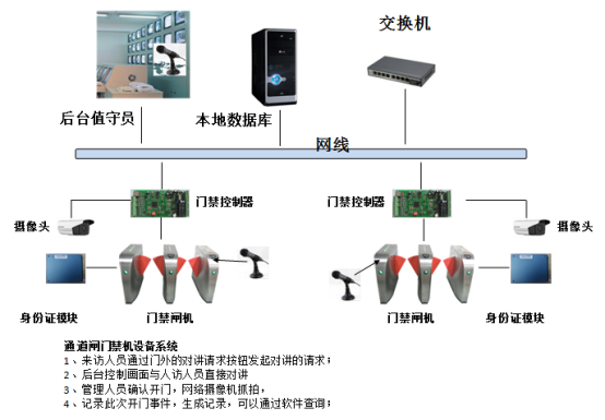 系统组成:专业通道门禁控制板、身份识别系统、图像采集设备、身份证阅读器、闸机门禁设备;