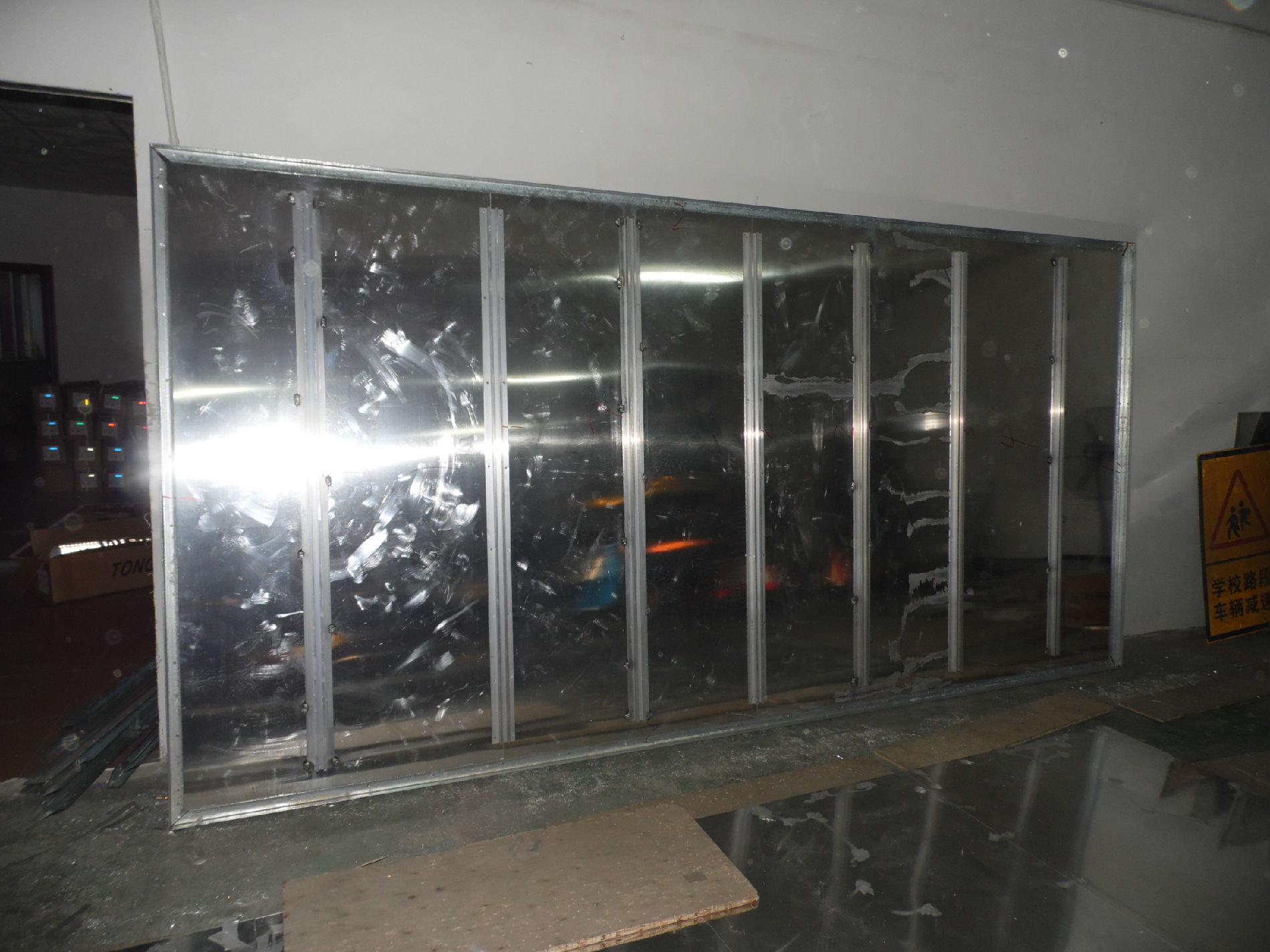 1. 下料。按照图纸要求,制作立柱、版面、立柱采用国标钢管,对不够设计长度的进行焊接,铝板进行裁剪。