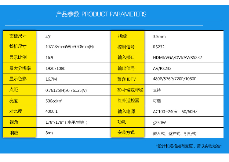 49寸lcd液晶拼接屏大屏 安防监控拼接电视墙 LED液晶拼接显示单元