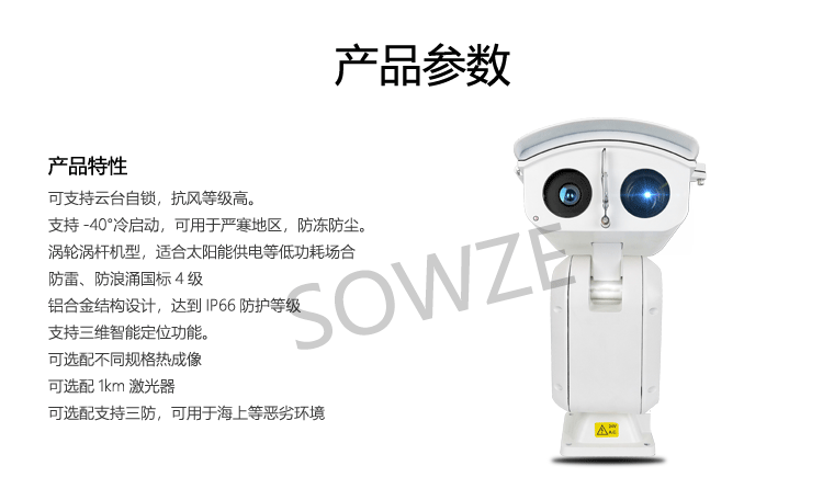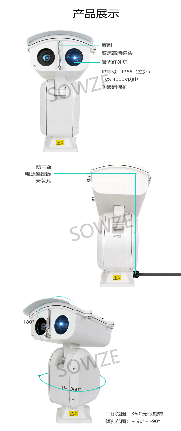 33倍光学变焦(4.6-152mm),激光芯片5W有效距离:20-800米