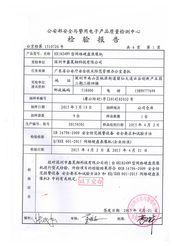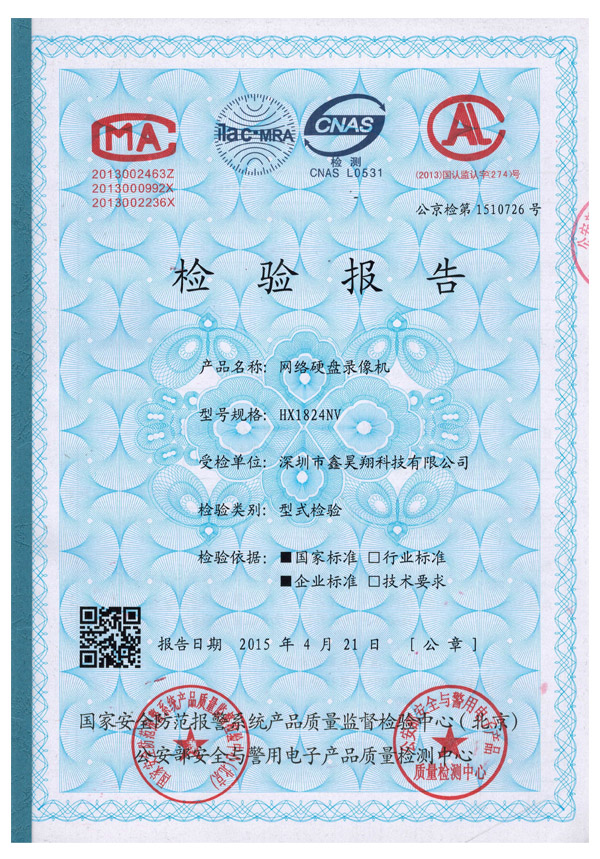 网络硬盘录像机在2015年4月通过公安部认证