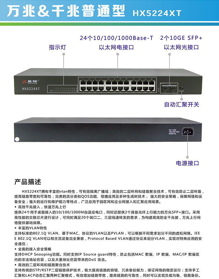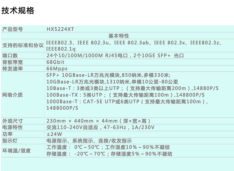 昊翔® HX5224XT 弱三层交换机(2万兆+24千兆)