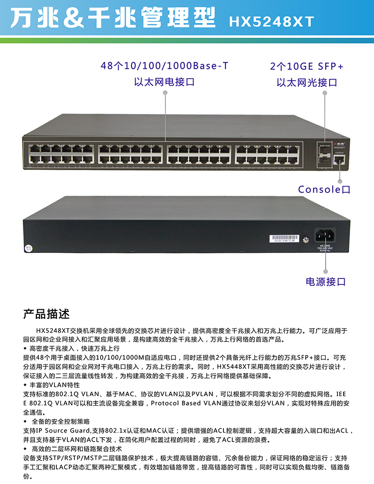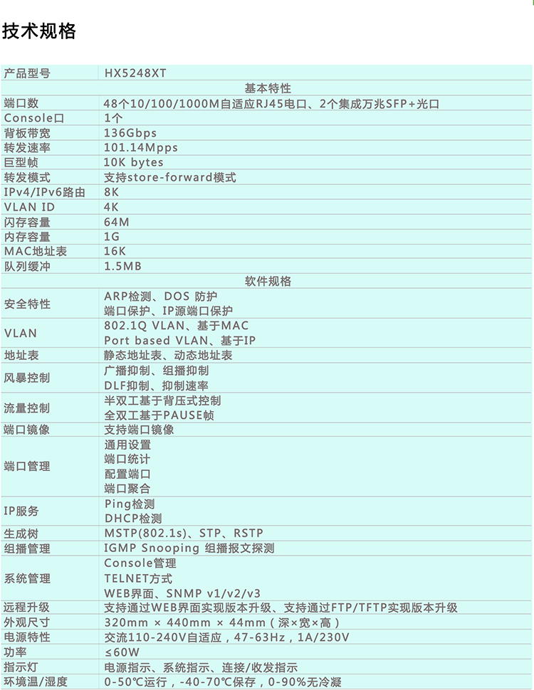 昊翔® HX5248XT 万兆三层智能管理型交换机(2万兆+48千兆)