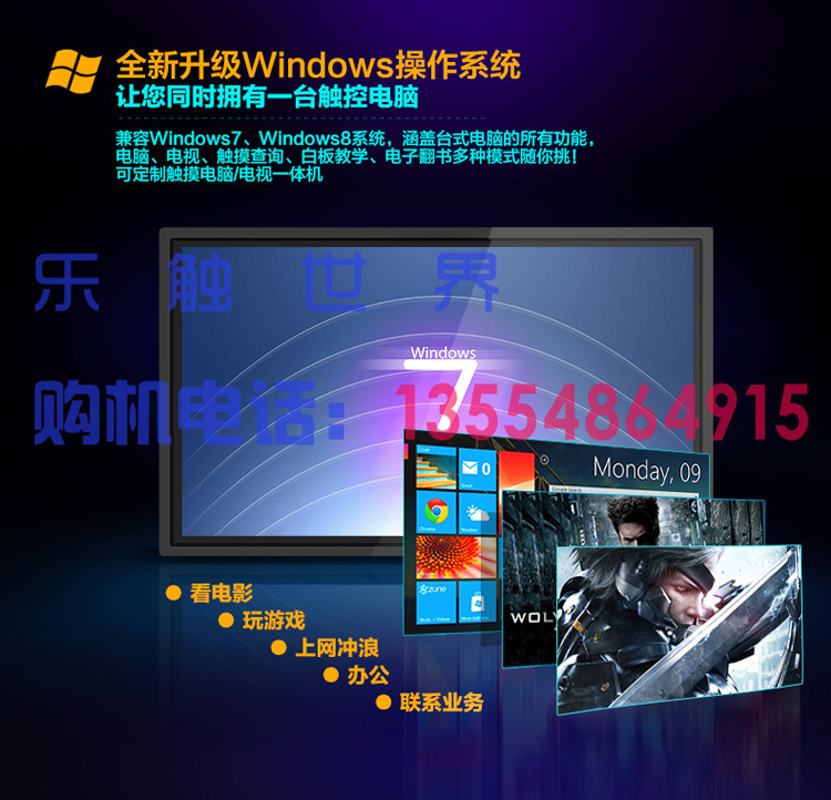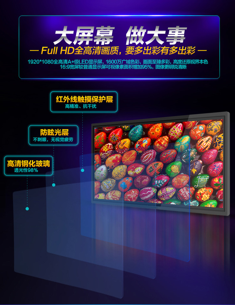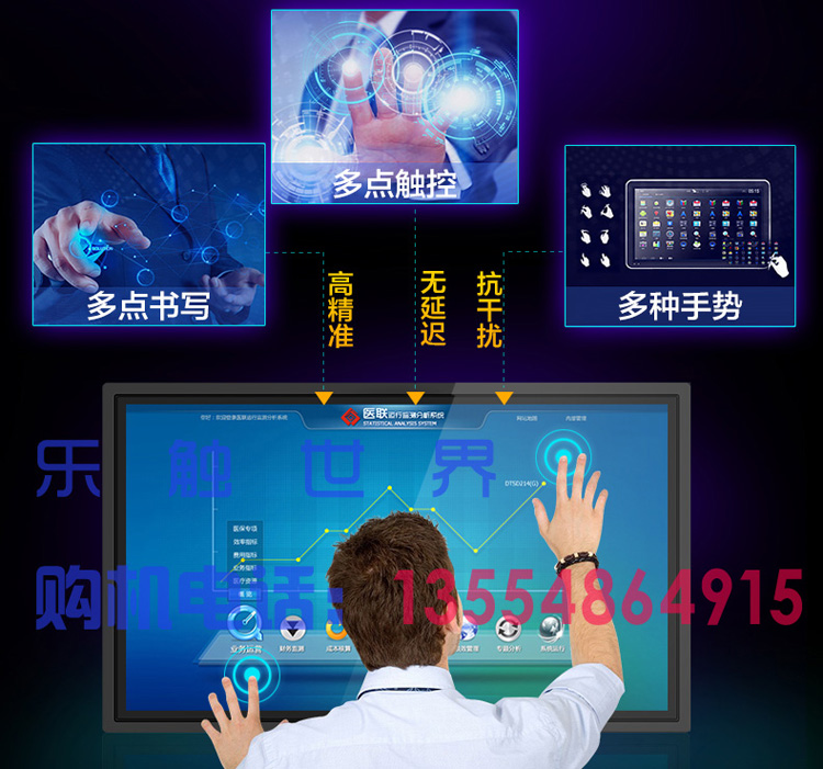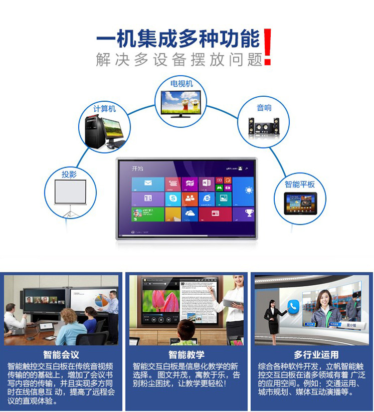 触摸教学一体机,集投影 教学 电脑 电视 电子白板 音响为一体,实现智能会议,智能教学 支持多点触摸放大缩小 多屏互动等各种应用
