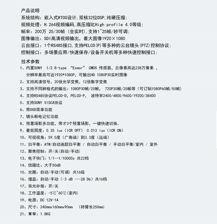 术野摄像机 SDI-1080P/30帧高清摄像机7320