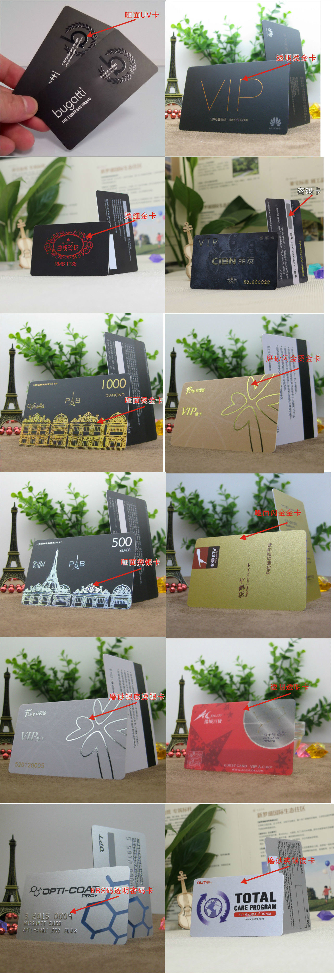 - 本公司主要制作PVC卡和智能卡,卡片的种类有:接触式IC卡、非接触式IC卡、ID卡、人像卡、贵宾卡、会员卡、磁条卡、条码卡、射频卡、学生证、校园卡、异形卡、刮刮卡、医疗卡、金卡、银卡、铂金卡、酒店预订卡、感应IC卡、感应ID卡、透明卡、磨砂卡、半透明磨砂卡、钻石卡、水晶卡等各类PVC塑胶卡片、工作卡、刮刮卡、积分卡、考勤卡等。本司采用四色印刷,具有印刷精度高、色彩鲜艳、出货快的特点,同时改进了传统的制卡工艺,有效地避免了偏色、卡面刮花等等制卡常见质量问题。质量过硬、价格适中是本司的最大优势。