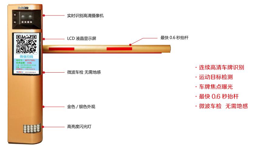Ø 高速抬杆:自主研发直流变频技术,高速抬杆0.6秒(3米直杆),可分别调节抬杆落杆速度,高速抬杆快速通行,慢速落杆确保安全;