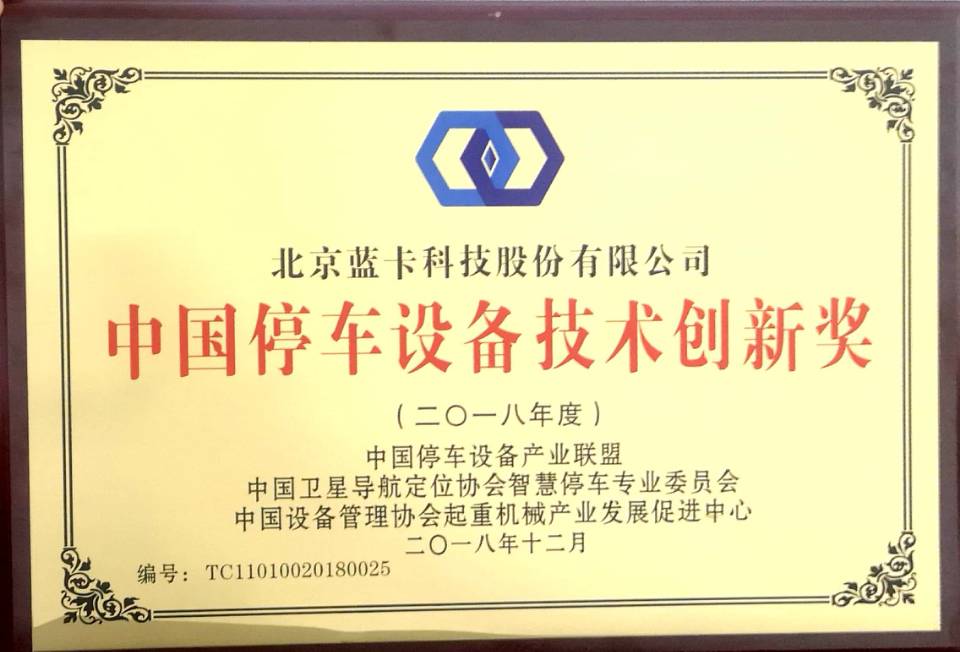 蓝卡科技荣获“中国停车设备技术创新奖”