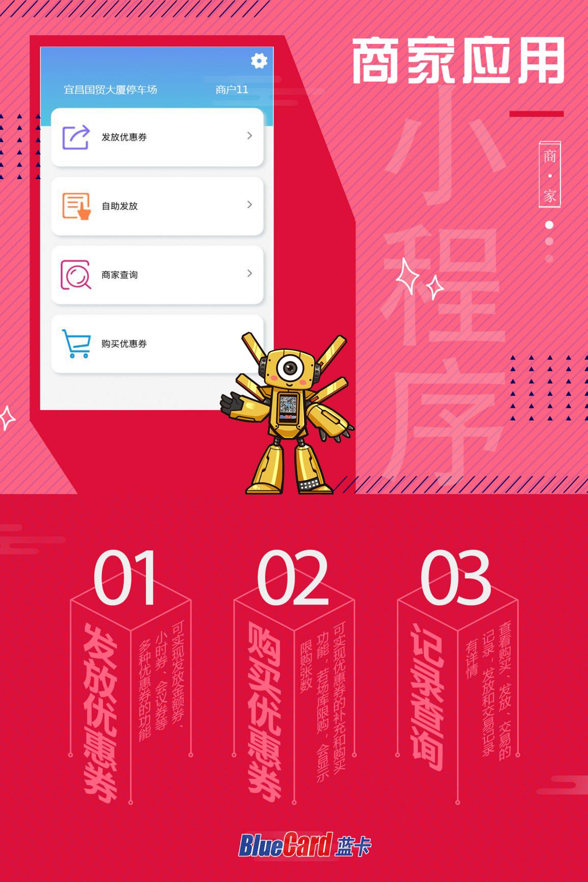 商家可利用蓝卡商家小程序,完成发放优惠券、购买优惠券、记录查询等功能操作。