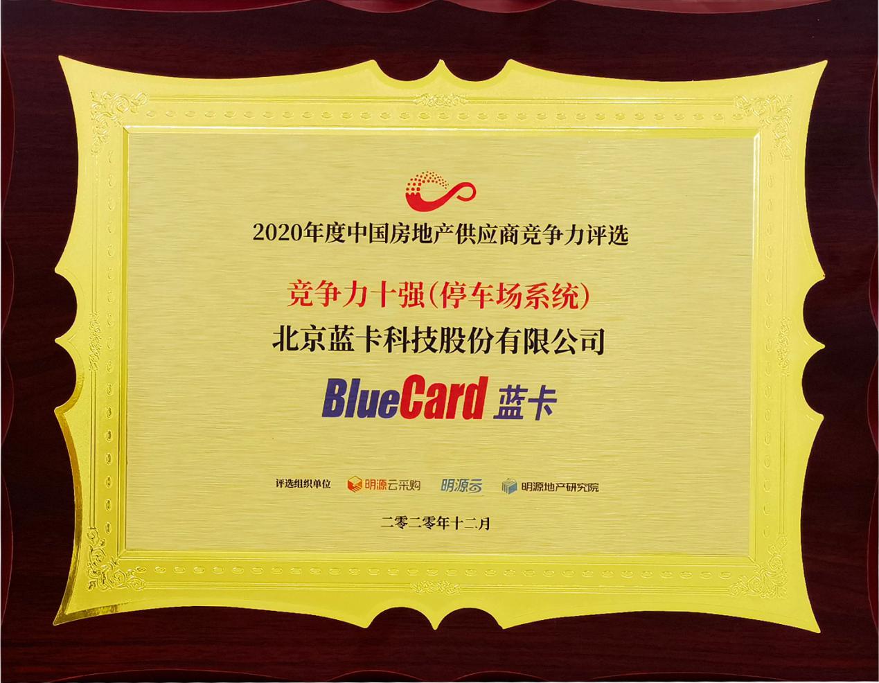 蓝卡科技荣获停车场系统竞争力十强(停车场系统)第三名,这也是蓝卡科技连续第三年获得这个类别的竞争力十强,这对蓝卡近年来在地产行业布局AIoT无人化停车场管理系统有着积极意义。