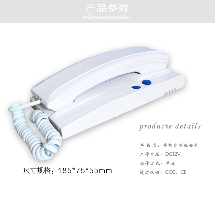 技术参数 工作温度:-30℃+75℃ 振铃声级:>=60db 工作电流:静态(0ma) 动态(<16ma) 尺寸规格:L185 X W75 X H55mm