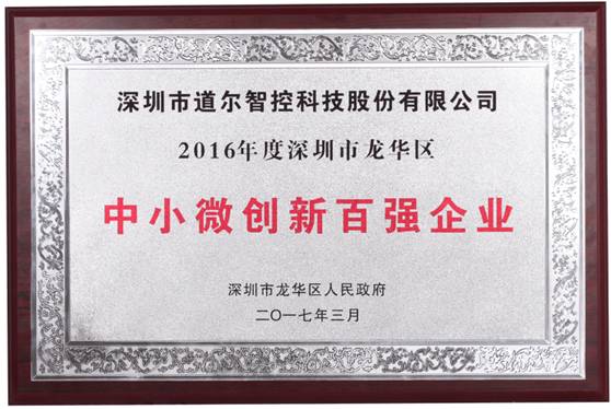 此次道尔智控荣膺龙华区中小微创新百强企业再一次印证公司强大的研发实力和创新能力。在此感谢龙华区政府、科技创新局对公司的肯定及大力支持,公司将继续保持良好发展态势,发挥自身优势资源,持续创新,助力中国制造转型升级!