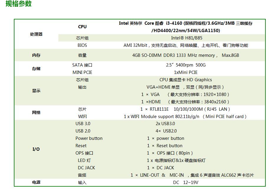 低端:baytrailJ1800/J1900无风扇低成本的OPS电脑(幼教触控一体机专用)