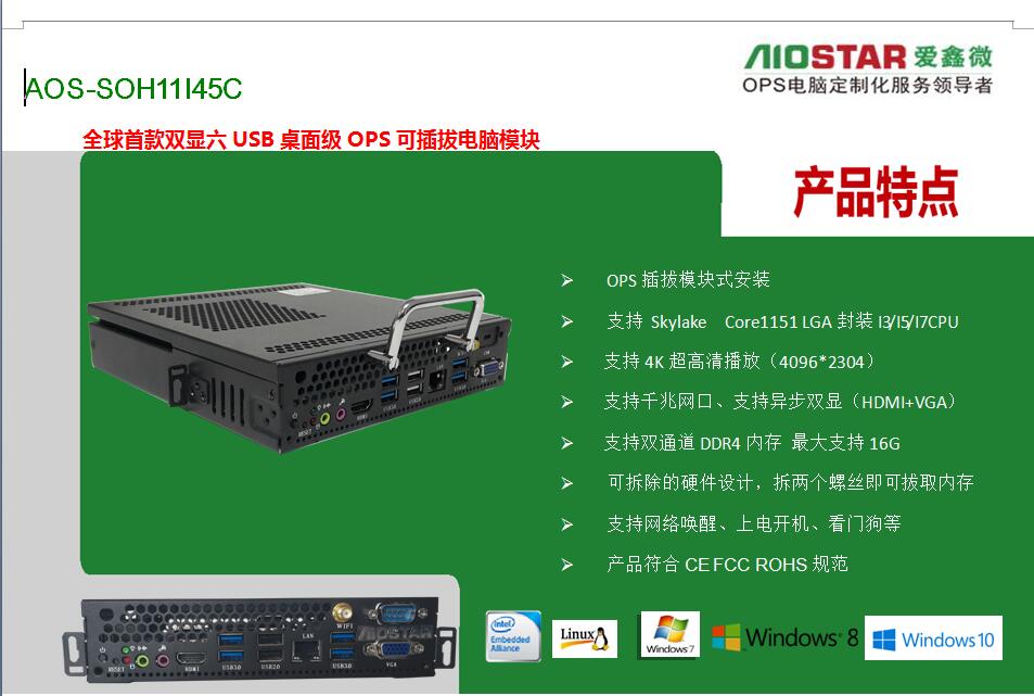 顶极OPS插拔式电脑方案:H110+6代CPU+2G独立显卡