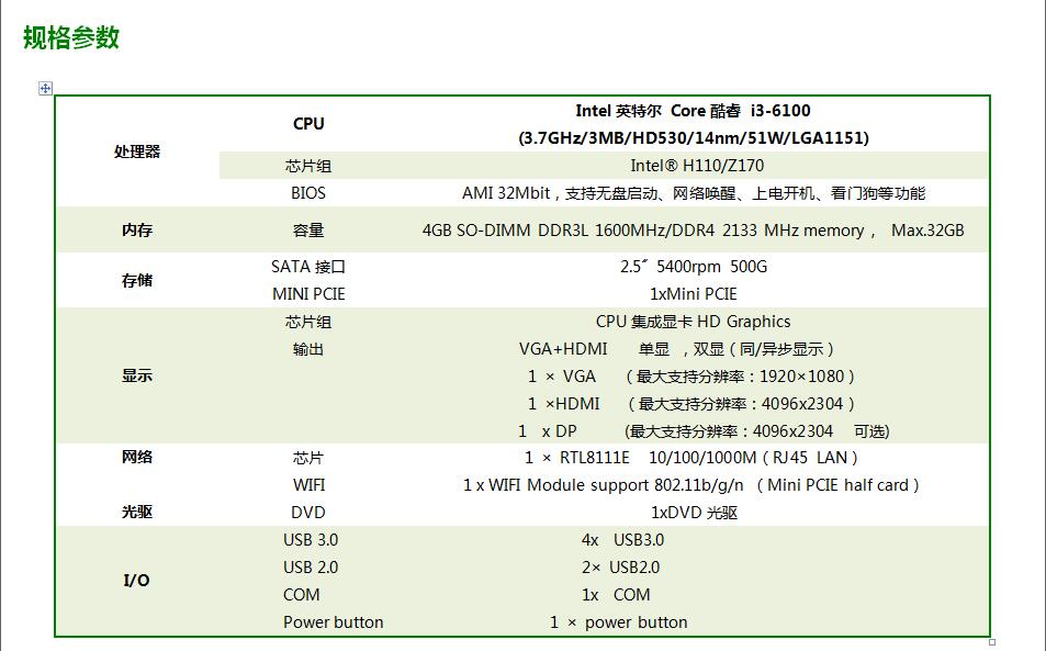 高端:H110+6代CPU (市场最新方案 4K极清方案)欢迎客户取样测试。支持4组USB3.0+3组USB2.0+3组异步显示(VGA+HDMI+DP)+3组网口(可以直接接IP摄像机进行录播与监控或者网络内外网隔离进行封标)
