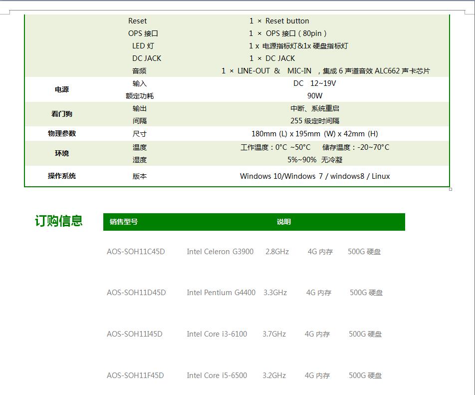 低端:baytrailJ1800/J1900无风扇低成本的OPS电脑(幼教触控一体机专用)