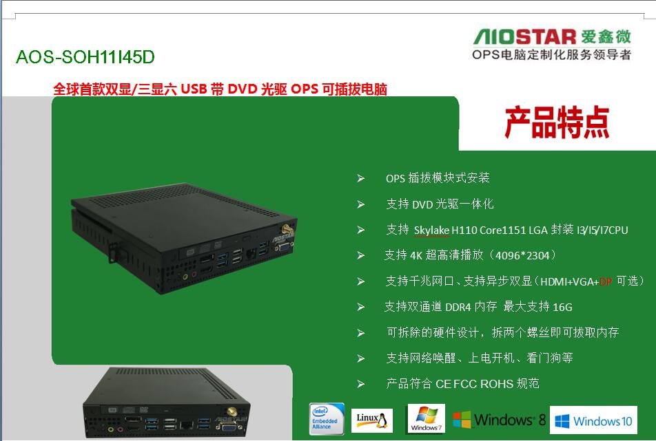 顶极OPS插拔式电脑方案:H110+6代CPU+2G独立显卡