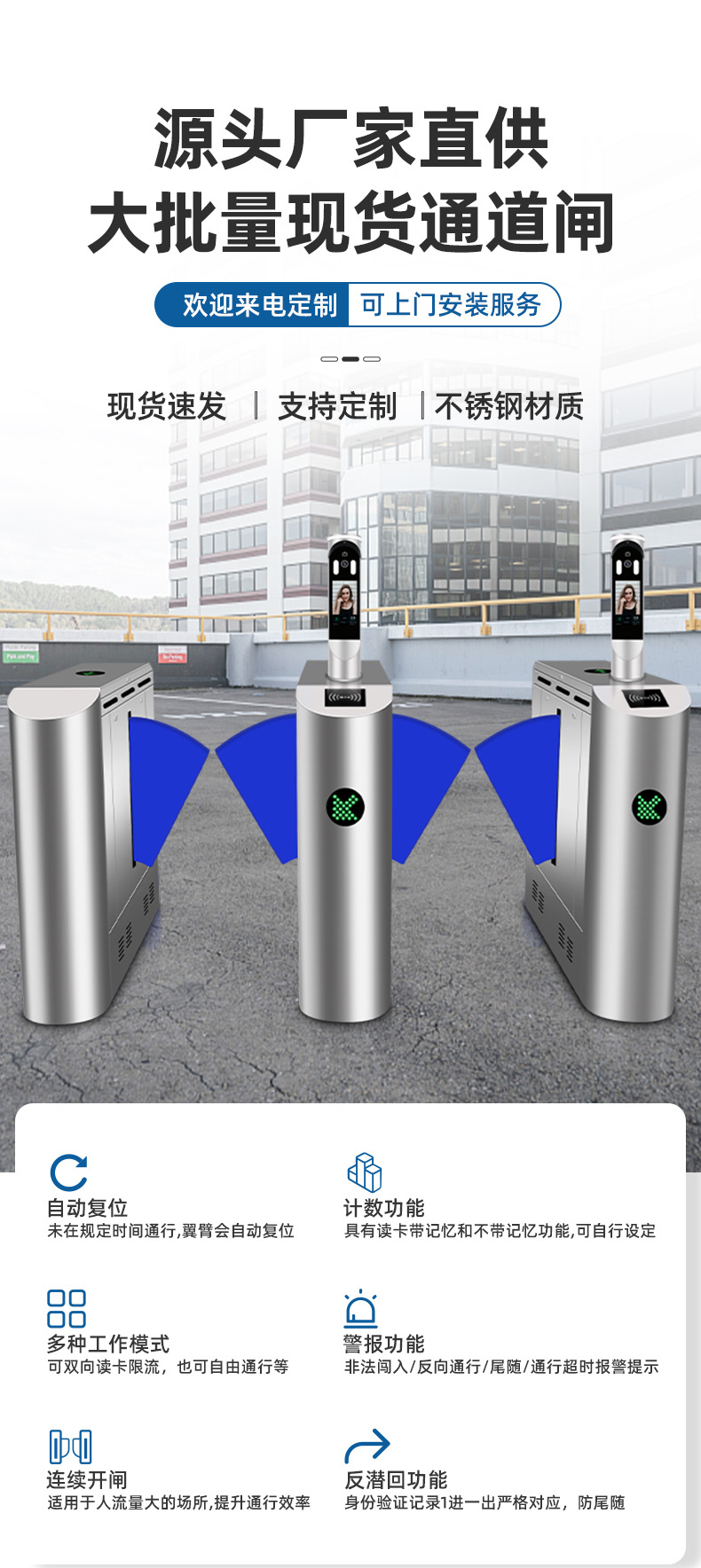重庆人行通道闸机 摆闸 翼闸 工程智慧工地人脸识别 刷卡小区门禁系统