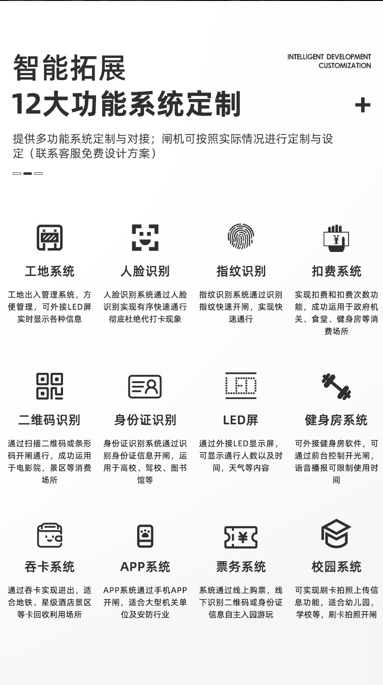 还可在通行数据方面如通行权限控制、计数、考勤、签到等扩展应用,具有良好的扩展性。