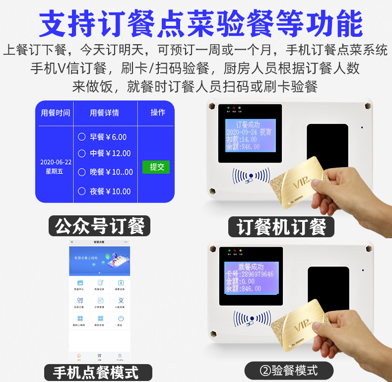 9、 刷卡消费模式:普通模式、定额消费模式、快捷键方式、每餐计次模式。