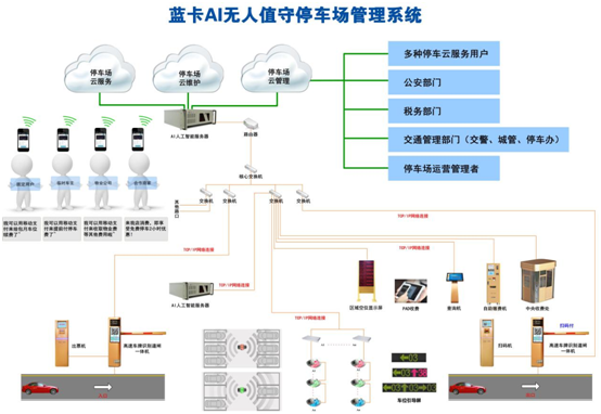 蓝卡科技的AI无人值守停车场管理系统全系统拓扑原图