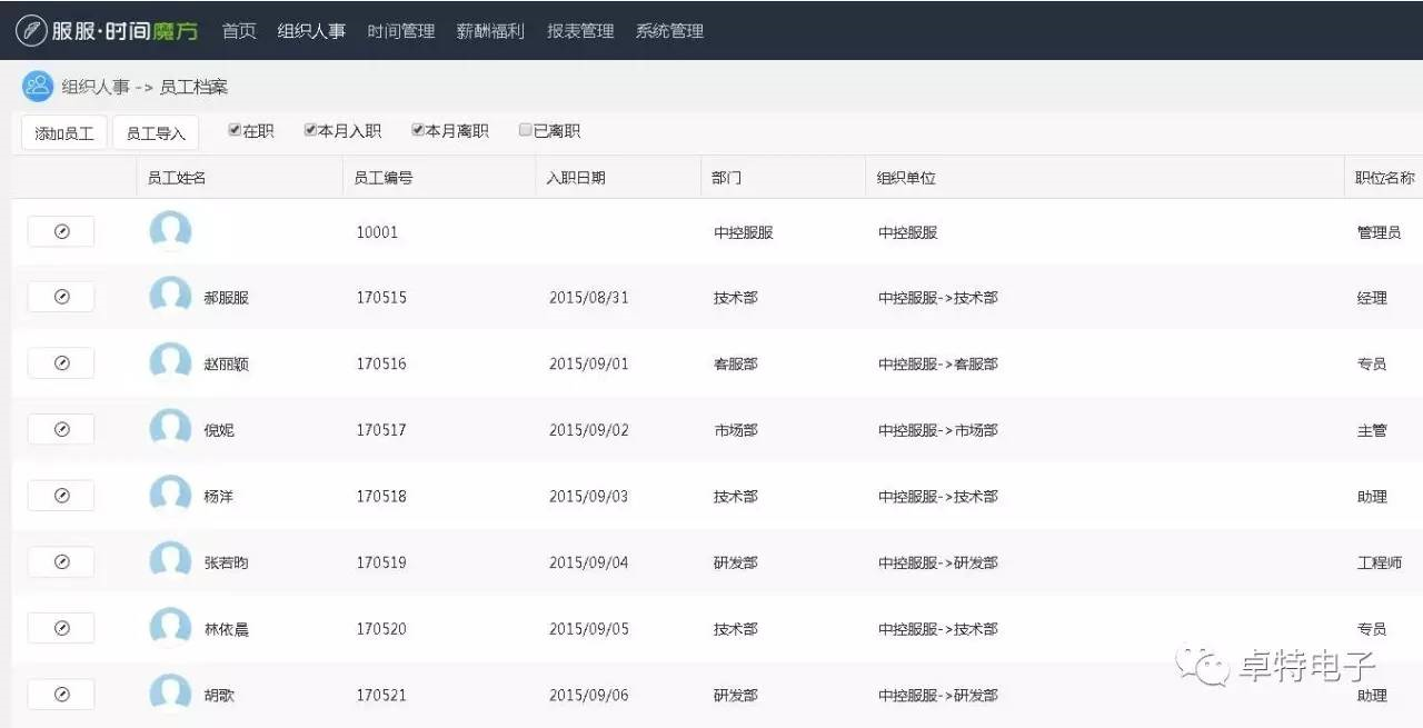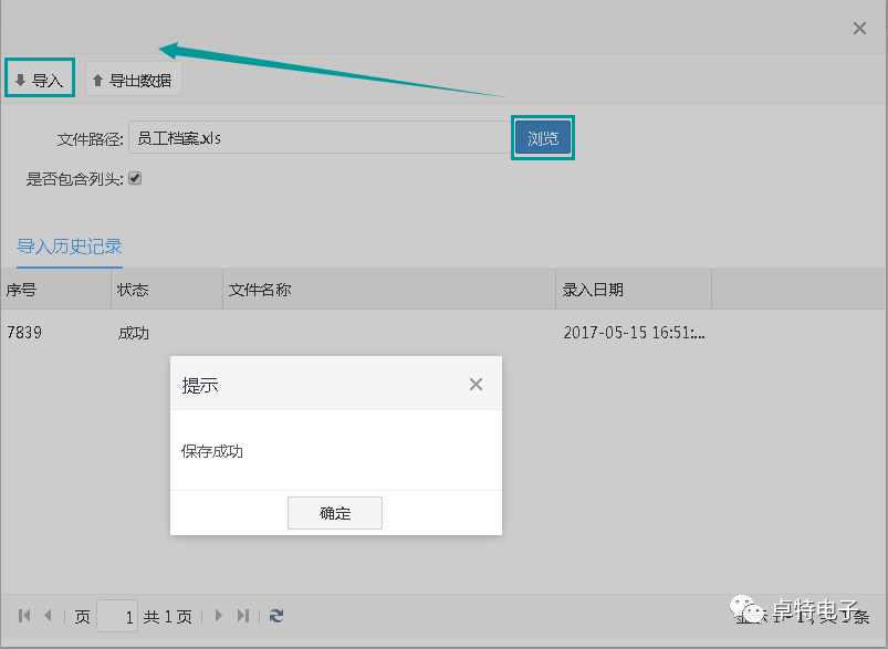 4、导入成功后,系统自动更新“员工档案”管理界面
