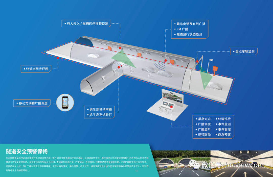 自愈性以太光环组网,通过雷达、视频分析自动监测隧道通行状态,自动预警、事件上报,并在第一时间启动音频广播、FM广播、高亮诱导逃生灯,提升隧道保畅、安全预警、紧急逃生能力,一键联动、一秒完成!