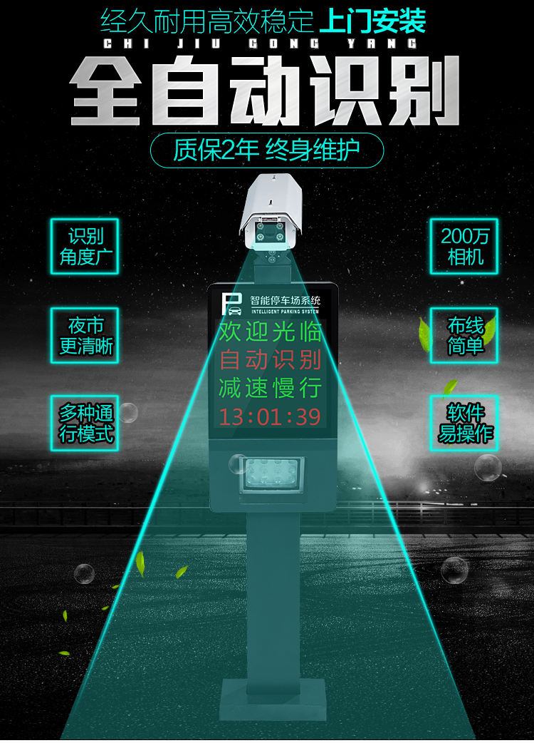 8) 集成一体化设计,自带补光灯功能,减少施工量,系统简单,便于维护;