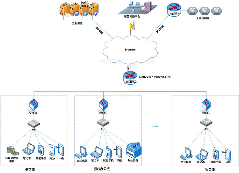 对于生活在网络时代的学生来说,“饭可以一日不吃,网不可一日不上”已成为其真实写照,教室上课需查询资料及在图书馆写论文也需用到WiFi,传统校园网已不能满足需求;同时,无线网络覆盖也是建设“智慧校园”的需要,通过对教学、科研、管理和生活服务的相关信息资源的整合,推动教育信息化和管理一体化的实现。宿舍作为师生学习工作之余的主要休息娱乐场所,在学校生活中有着举足轻重的地位。随着手机、笔记本、IPAD等各种各样无线终端的推广,宿舍环境对无线网络的迫切需求愈发凸显,为宿舍提供高速稳定的WiFi服务,可以丰富师生业余生活。