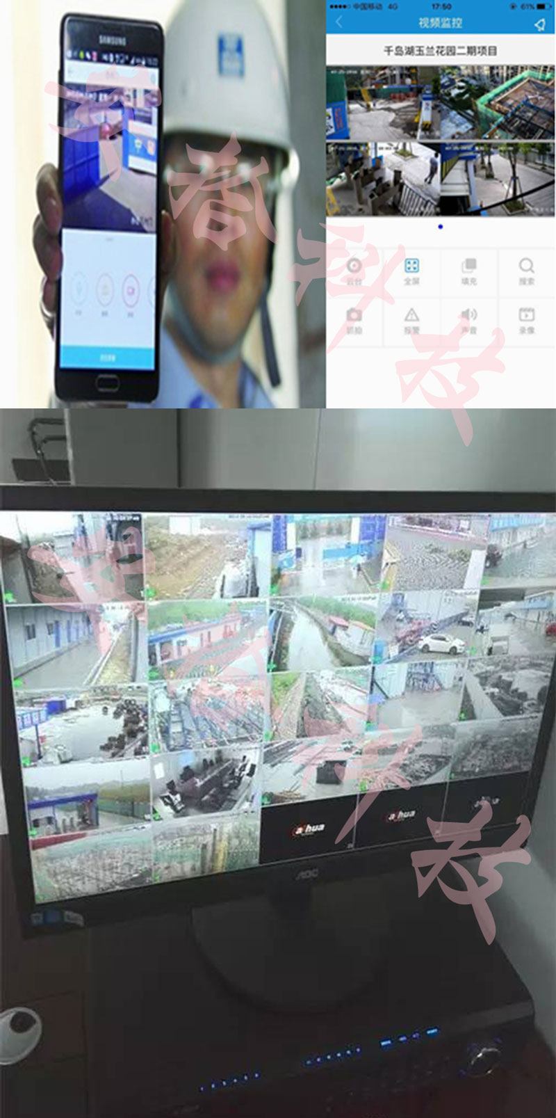 建筑工地项目指挥中心可任意调看整个工地任意监控点的情况;并能升级联网到建筑工地总部主管部门,总部主管部门可以远程监控建筑工地的情况,了解工地的生产情况;工地管理者也可以通过网络,远程实时监看到工地的情况;并可以远程监看工地安全生产情况,发现安全隐患及时处理。
