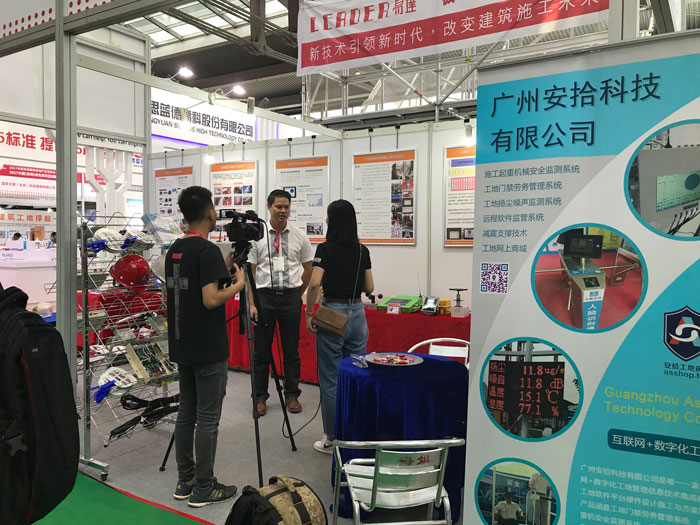 展会第一天广东广播电视台记者采访关于智慧工地的相关信息加以报道,对智慧工地物联网这一块抱以赞赏的心情。