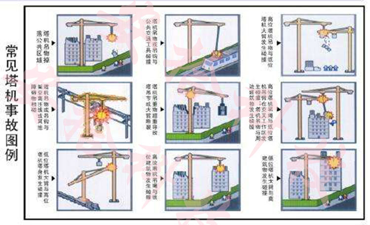 无论单塔或群塔都会发生碰撞事故,常见事故如图1.6。