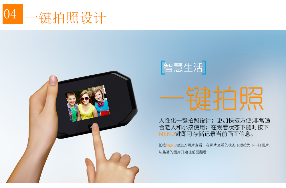 产品类别: 目前产品主要有wifi门铃、电子猫眼、防盗报警、可视门禁等系列产品。每个系列都具有低中高端产品几十余款;以满足不同客户的选择。