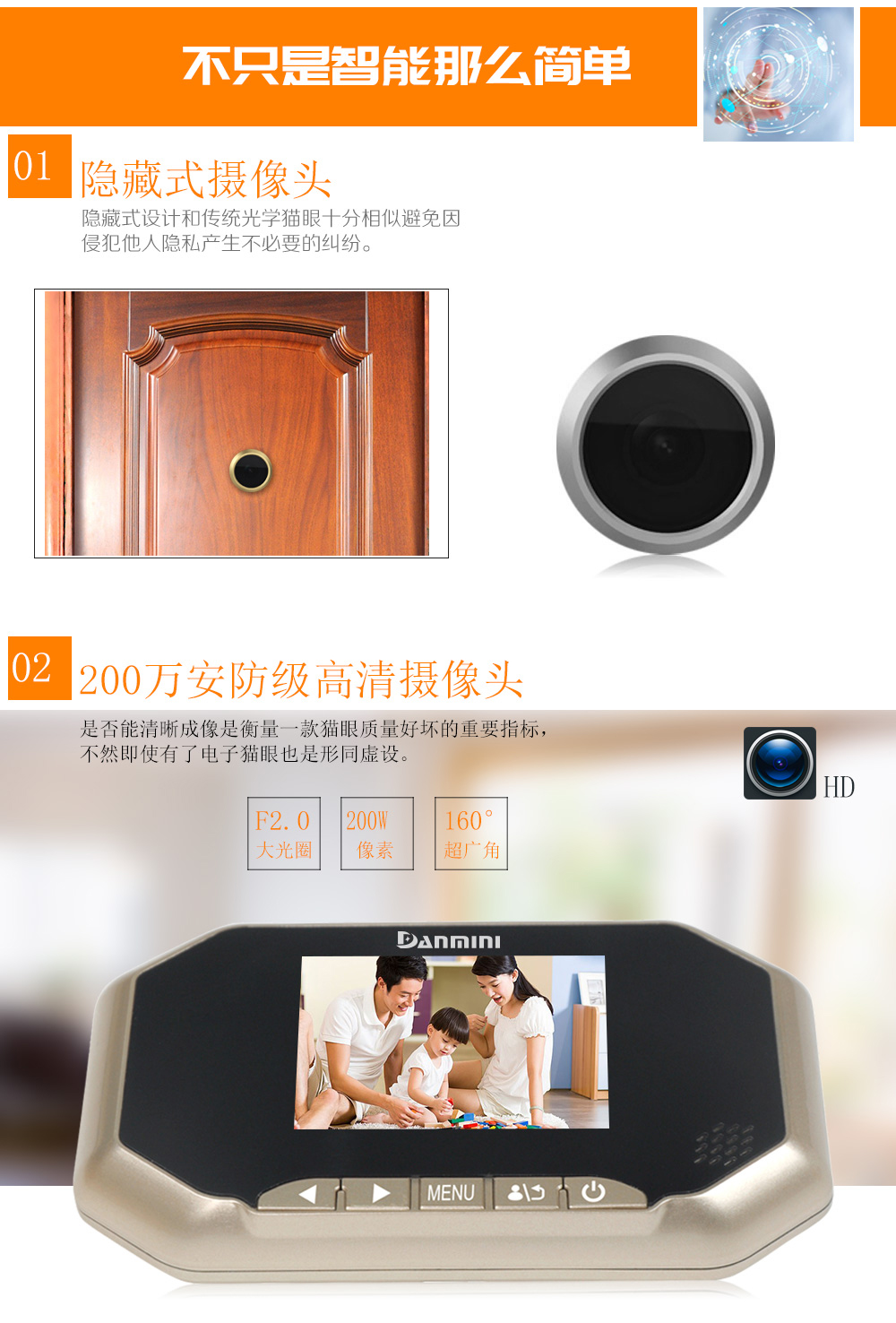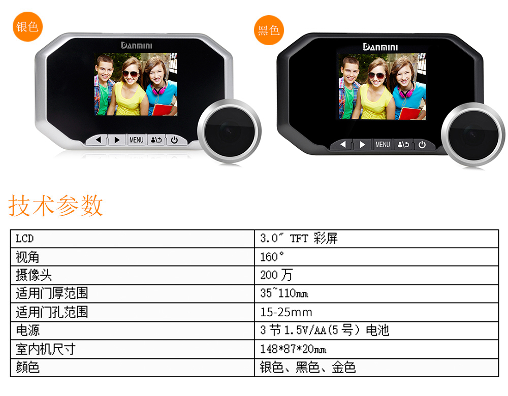 丹米尼3.0寸家用智能电子猫眼