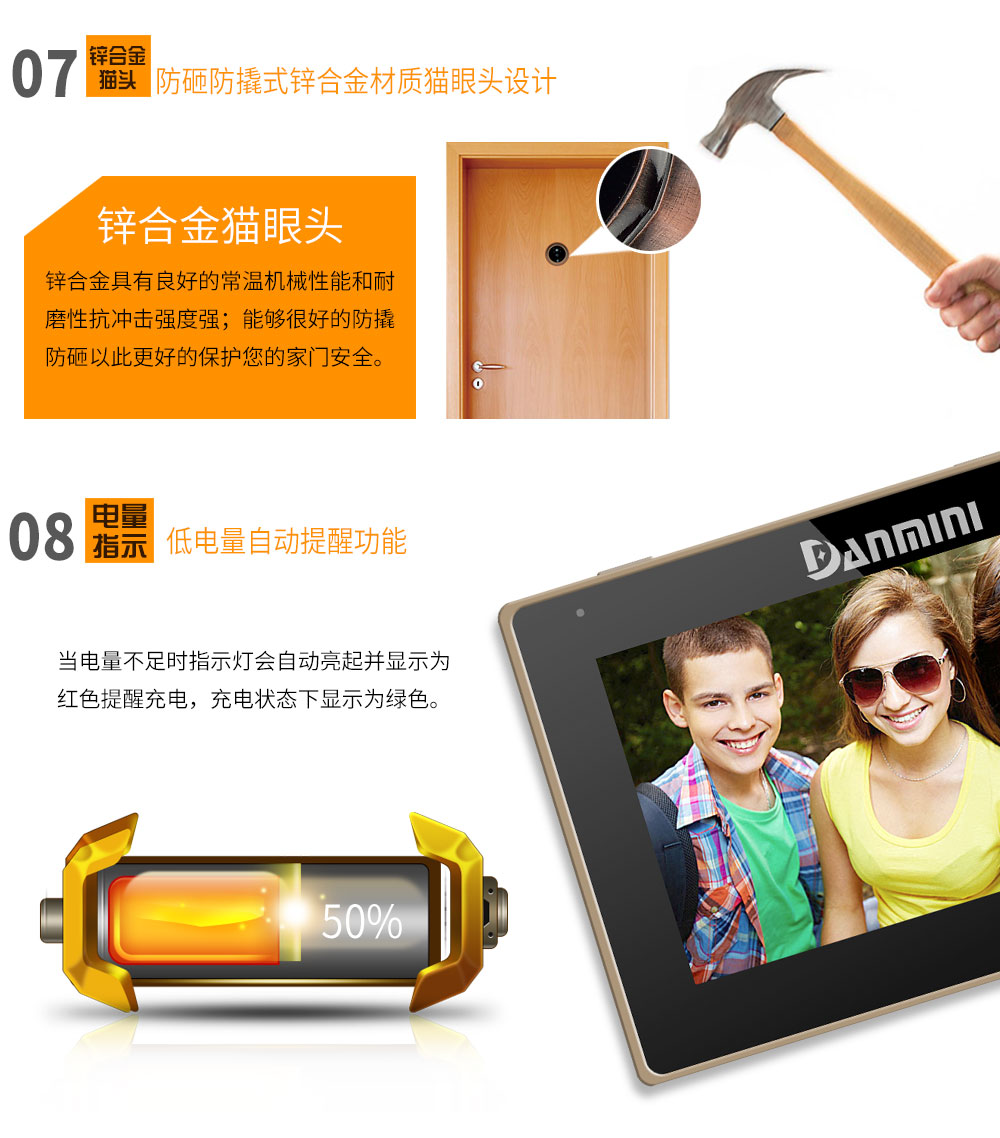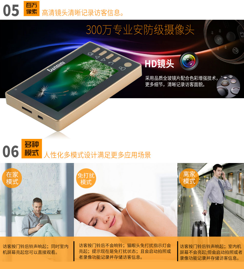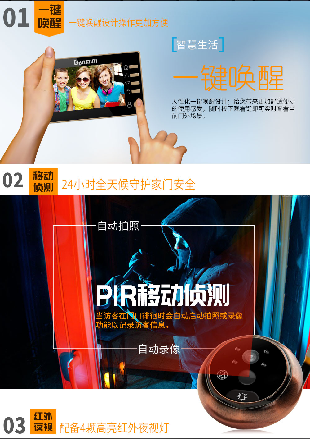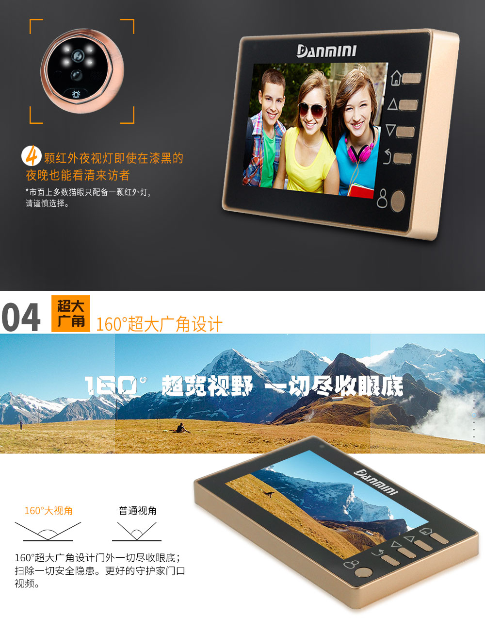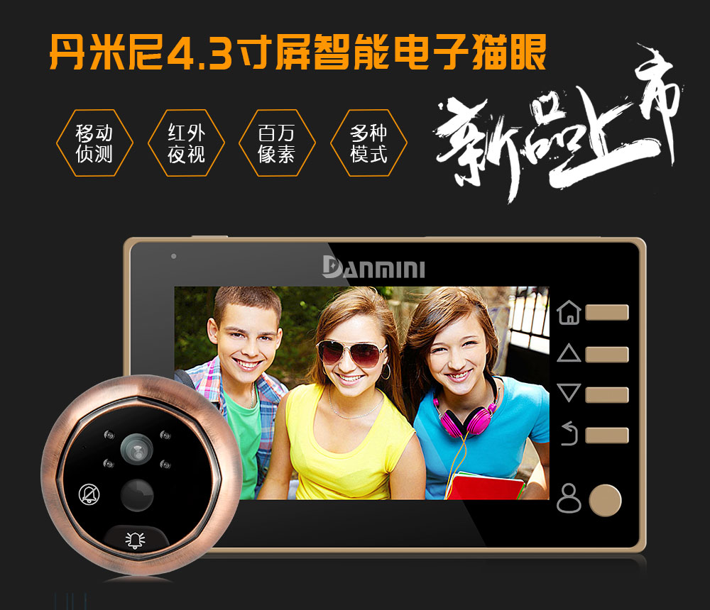 丹米尼4.3寸智能电子猫眼移动侦测红外夜视