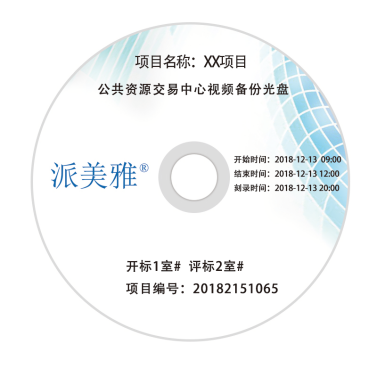 派美雅作为全国领先的高新科技企业,凭借在公共资源交易中心/政府采购中心行业积累丰富的经验,业界首家推行派美雅开评标音视频数据光盘自动刻录归档系统,为用户提供全自动备份视频数据,根据开评标信息,进行刻录,并按照用户需求智能刻录到一张或多张光盘上,并在盘面上打印项目名称、项目编号、开标日期等信息,便于光盘归档管理。