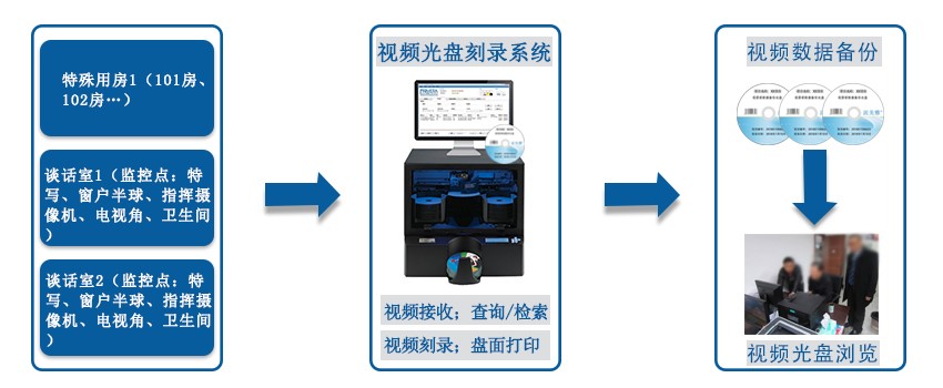 派美雅同步录音录像光盘打印刻录系统,为用户解决全自动刻录同步录音录像数据光盘,无需人工干预。告别传统的认为下载导出视频数据、手动刻录更换光盘等繁琐步骤,自动获取视频数据并刻录打印光盘。将审讯视频按照一案一盘标准自动输出,同时在光盘上打印包括案件名称,案件编号,涉案人员,审讯/刻录时间等相关信息。