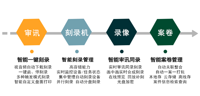 在科技发展日新月异的今天,办案场所的转型升级是司法发展改革的重要组成部分,更是顺应司法体制改革的助推器,加强新模式下全程同步录音录像规范化管理,全力打造符合现代司法发展所需的办案场所已经应运而生,实属必然。但各级司法机关缺乏相应建设标准,尤其是在审讯同录光盘刻录方式、存储介质及方案设计这些方面形态各异,缺乏相应督察技术,在一定程度上造成了司法机关办案效率低下、难题众多。