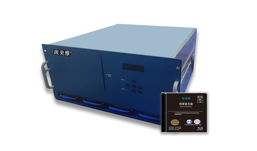为保证归档光盘的安全性、可靠性,配套派美雅全自动档案蓝光光盘检测刻录机可对其进行自动定期检测、批量检测,达到三级预警线后,数据自动回读迁移并翻刻及盘面打印。
