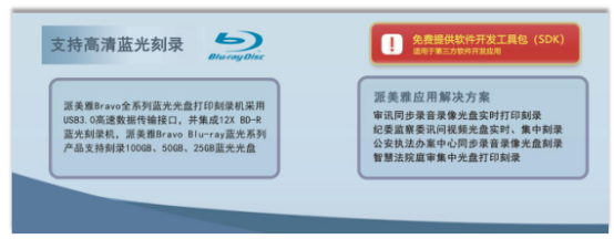 我们是国内首家推广和销售智能光盘制作设备的公司。并一直以强大的技术实力引领和推动国内先进的光盘打印、光盘制作、光盘存储行业的发展,将光盘打印、光盘刻录、光盘存储技术等广泛的应用于检察院、法院、公安局、监察委、军工、科研院所、档案局、公共资源交易所中心等行业中,同时结合用户需求,竭力为全国用户提供先进完善的光盘制作归档存储解决方案。