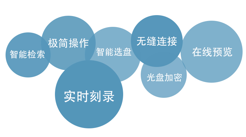 3) 多任务、多通道数据实时并行高速下载刻录,支持画中画、检索查询、超大容量自动分盘,并对光盘做加密。